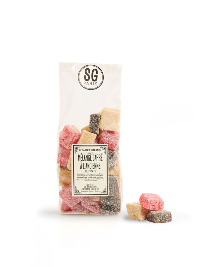 Fabriqués en France, ces petits plaisirs multicolores délicatement miellés sont aromatisés au citron, à l'orange, à la poire, à la framboise, au cassis, et à la menthe.